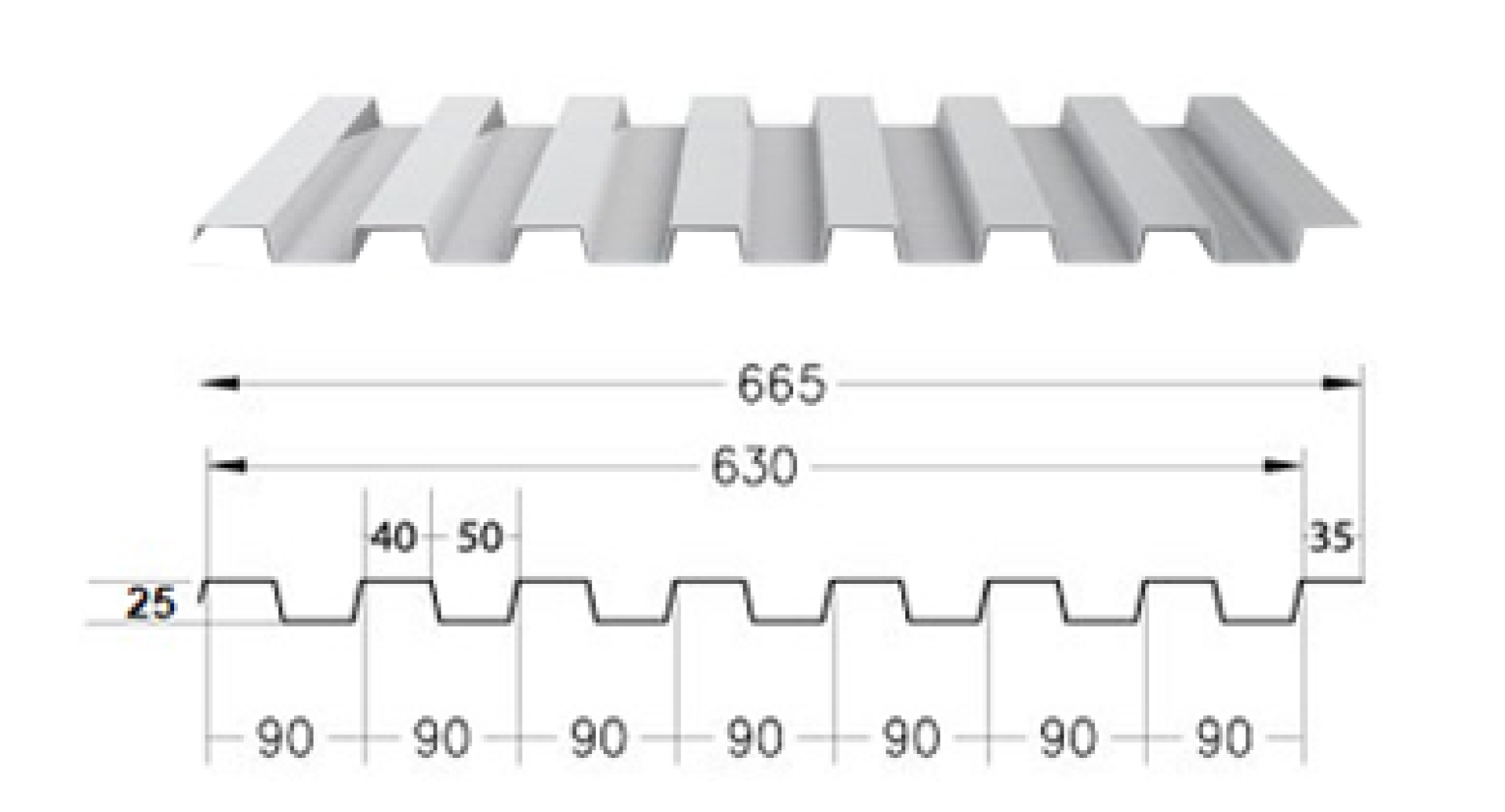 - ความกว้างของลอนหลังคาหลังจากหักระยะซ้อนทับแล้วไม่น้อยกว่า 630 มม.