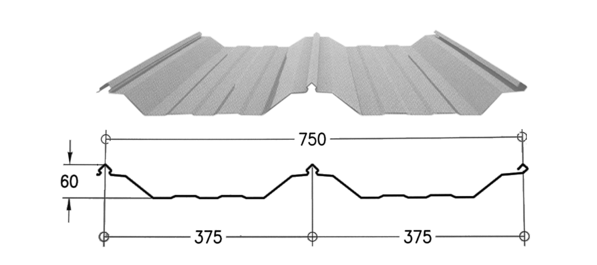 - ความกว้างของลอนหลังคาหลังจากหักระยะซ้อนทับแล้วเท่ากับ 750 มม.