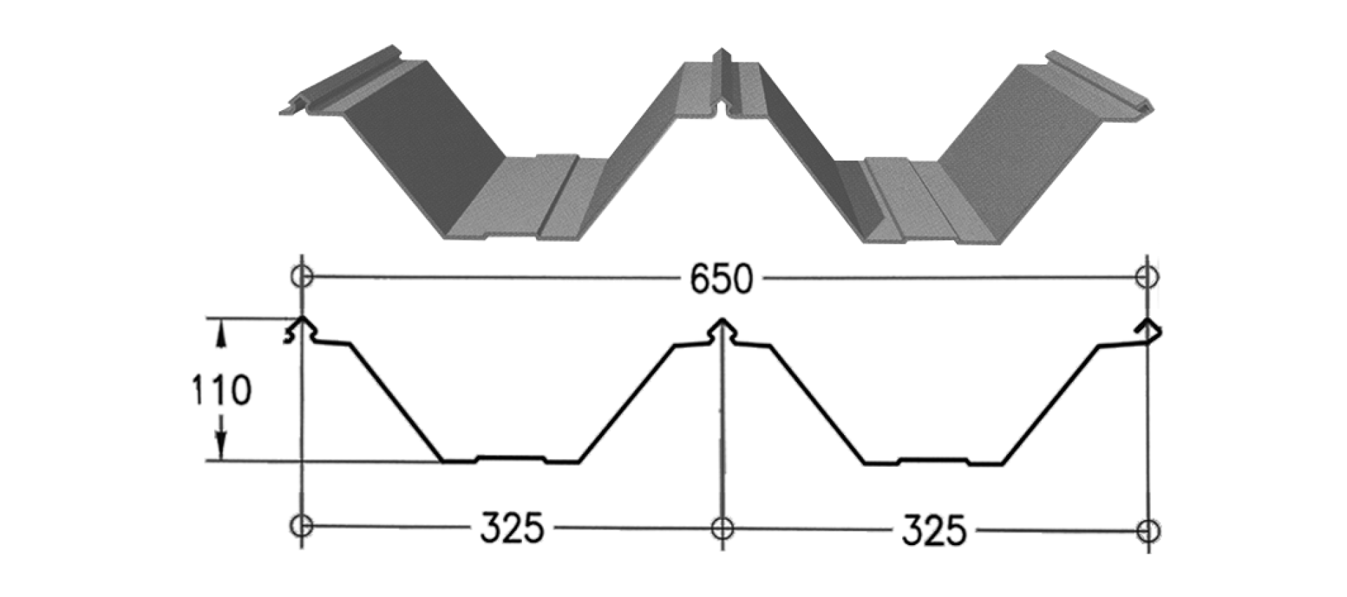 ลอน CR-300SL SnapLock System (สแน็ปล็อค ซ่อนสกรู) / ความกว้างลอนใช้งาน 300 มม. / ความสูงลอน 32 มม.