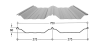 ลอน CR-750S (Trimdek-750) Bolt System ความกว้างลอนใช้งาน 750 มม. ความสูงลอน 25 มม. มาตรฐานลอนหลังคา มอก.1128-2562 ติดตั้งระบบยิงสกรูยึดแผ่น